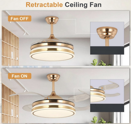 Upgrade your space with this sleek 2-in-1 Foldable Ceiling Fan —where modern lighting meets powerful, whisper-quiet cooling. Designed with retractable blades for a clean, minimalist look, it delivers bright illumination and refreshing airflow in one smart fixture. Perfect for bedrooms, lounges, and apartments, it blends style, comfort, and functionality effortlessly.