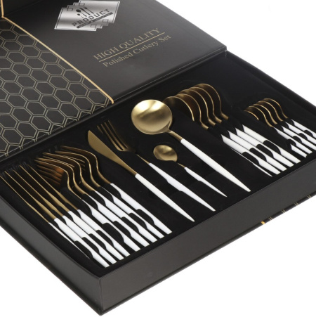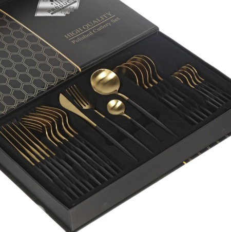 The perfect blend of elegance and durability for any dining occasion. Made from quality stainless steel, this set includes everything you need for a complete table setting: 6 dinner knives, 6 dinner forks, 6 dinner spoons, and 6 teaspoons. Each piece is designed for comfort and style, ensuring a sophisticated dining experience. Resistant to rust and corrosion, this cutlery set is built to last, making it a timeless addition to your kitchen.