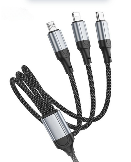 Stay powered up wherever you go with our Set of Two: 3-in-1 200W Charging Cables. Designed for convenience, these versatile cables support USB-C, Lightning, and Micro-USB devices — all in one! With a powerful 200W output, they charge phones, tablets, and more in record time. Perfect for home, office, or travel, this set is your all-in-one solution.