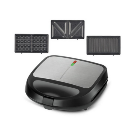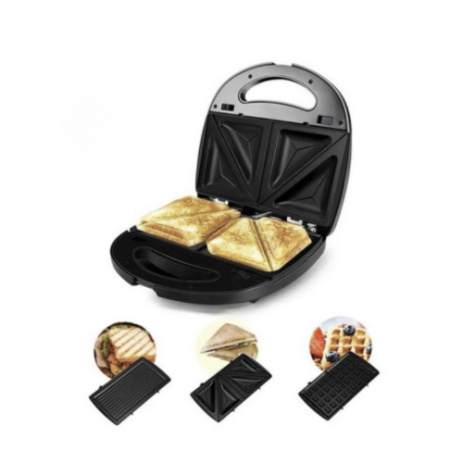 Get ready to unleash your culinary creativity with the 3-in-1 Sandwich Maker. With 3 interchangeable plates, you can make paninis, sandwiches, and waffles with ease. This versatile kitchen companion features double-sided uniform heating and non-stick coating for effortless cooking. Enjoy easy cleaning and convenient storage with its cool touch housing and vertical design