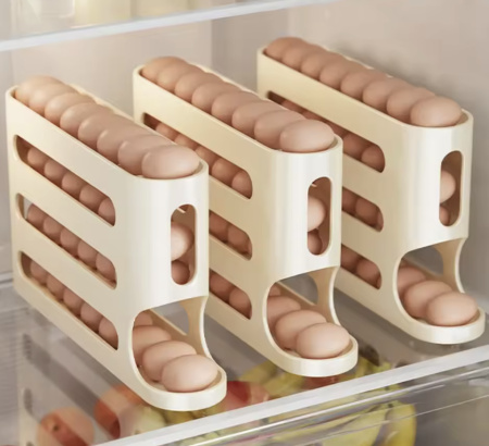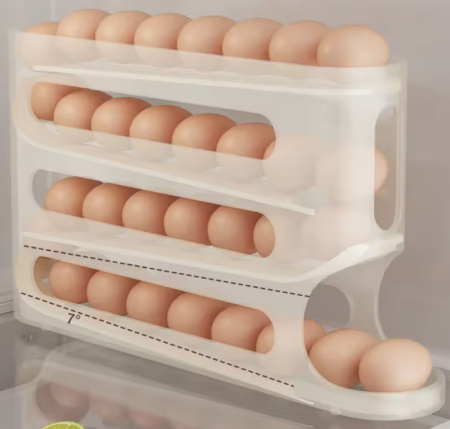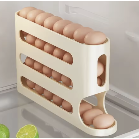 Upgrade your kitchen storage with the sleek and space-saving 4-Layer Automatic Egg Holder! Designed for convenience and style, this gravity-fed system automatically rolls eggs forward as you take one, keeping your eggs organized, visible, and always within easy reach. Perfect for fridges or countertops, it maximizes storage without the clutter.