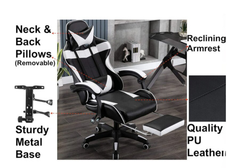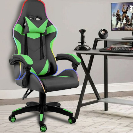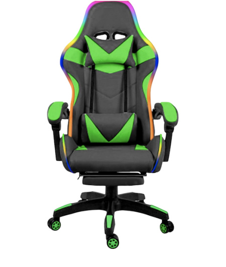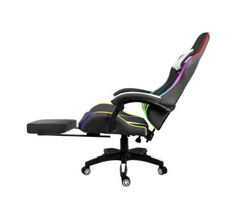 Transform your gaming experience with the LED gaming chair that’s built for comfort, performance, and style. Featuring customizable RGB LED lights with full speed, color, and brightness control, this chair turns your setup into a true battlestation. The ergonomic design includes a padded retractable footrest, adjustable reclining backrest, and vinyl upholstery for a sleek, easy-to-clean finish. With 360° swivel rotation, an adjustment lever for perfect height control, and a bold gamer aesthetic, it's everything you need to play longer and win harder.