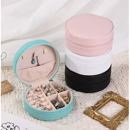 Keep your favorite jewelry pieces safe and organized with this Set of Two Mini Round Jewelry Boxes. Designed for convenience and elegance, these compact cases are perfect for travel or everyday use. Featuring a soft velvet interior and secure zipper closure, they provide the perfect storage solution for rings, earrings, necklaces, and more. Whether at home or on the go, these stylish mini jewelry boxes ensure your treasures stay protected in style.