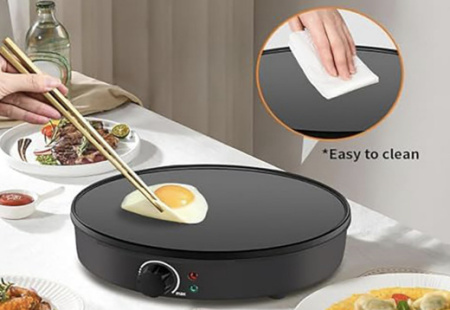 Make breakfast a breeze with our Non-Stick Pancake & Crepe Machine. Designed for effortless cooking, this compact yet versatile machine ensures perfectly round pancakes, crepes, and more every time. The durable non-stick surface allows for easy flipping and cleaning, while the adjustable temperature control helps you achieve your preferred level of golden-brown perfection. With its diameter, it’s perfect for crafting large, shareable treats or delicate gourmet creations. Whether it’s a quick weekday breakfast or a weekend indulgence, this pancake & crepe machine guarantees consistent results and endless possibilities.