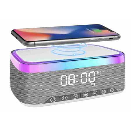 Transform your nightstand into a hub of style and functionality with the RGB Bedside Clock with Wireless Charging and Speaker — your all-in-one timekeeper, wireless charger, and Bluetooth speaker. Wake up to vibrant lights, crystal-clear sound, and a fully charged phone, all while adding a sleek modern glow to your space.