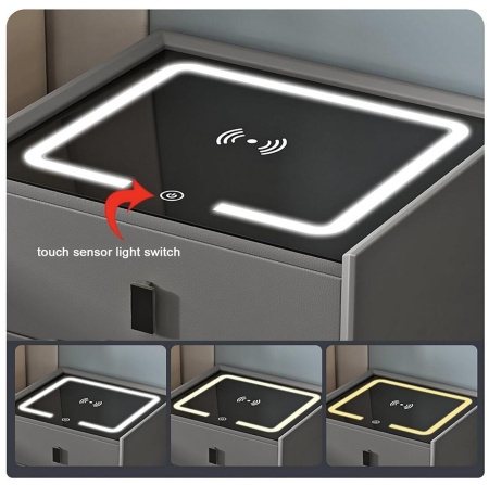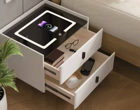 Upgrade your space with the Smart Multi-Functional Bedside Table, where style meets innovation. Featuring built-in wireless charging, USB ports, ambient lighting, and ample storage, this sleek table is designed to simplify your life. Whether you're powering up your devices, setting the perfect mood, or keeping essentials within reach, this table offers convenience and modern functionality—all in one smart design. Perfect for tech-savvy individuals who value efficiency and elegance.