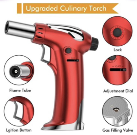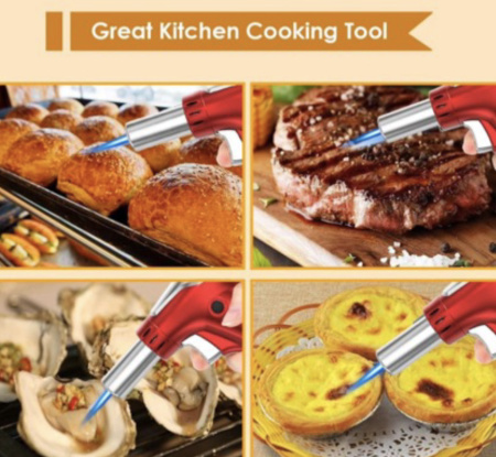Unleash precision and power with our premium Butane Torch — the ultimate tool for culinary perfection, craftwork, and quick fixes. Whether you're caramelizing crème brûlée, soldering jewelry, or lighting a campfire, this torch delivers a strong flame with reliable safety features and effortless refillability. Compact, stylish, and built to last — it's firepower at your fingertips.
