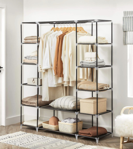 Maximize your storage space with this sleek and durable Fabric Portable Clothes Closet – the perfect solution for organizing your wardrobe in bedrooms, dorms, or temporary spaces. Designed with convenience in mind, it features a breathable fabric cover to protect your clothes from dust while keeping them easily accessible. With a sturdy frame and ample storage sections, this closet offers both functionality and style wherever you need it.