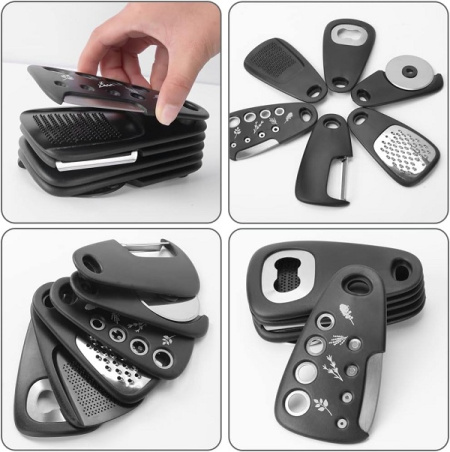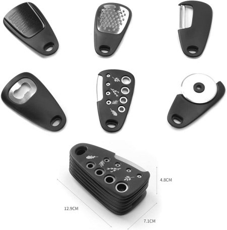 The KitchenPro Gadget Set is a versatile and convenient kitchen toolset. This six-piece set includes a pizza cutter, garlic grinder, vegetable slicer, and more. Made from durable ABS plastic and stainless steel, these gadgets are perfect for various kitchen tasks. The set is space-saving and portable, making it ideal for home use or outdoor activities like camping. All gadgets are dishwasher safe for easy cleaning.