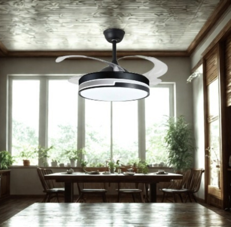 Upgrade your space with this Modern LED Ceiling Fan with Foldable Blades — where style meets smart functionality. The sleek, compact design opens into powerful, quiet airflow when in use and folds away neatly when switched off, doubling as a contemporary LED ceiling light. Perfect for modern homes, it delivers efficient cooling, bright illumination, and a clean, minimalist look in one elegant fixture.