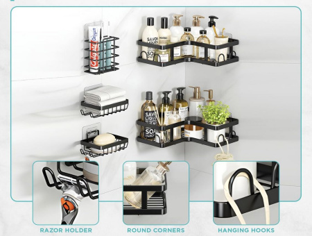 Upgrade your bathroom with the sleek and space-saving UrbanEdge Bathroom Organizer Set . Designed with a modern matte black finish, this all-in-one wall-mounted solution keeps your essentials neatly organized while elevating your space. From skincare and toiletries to soaps and brushes, each piece is crafted to maximize storage without clutter—perfect for creating a clean, stylish, and functional bathroom setup.