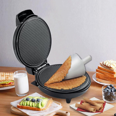 • Innovative design for making waffles, ice cream cones, egg rolls, and more