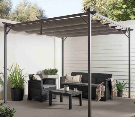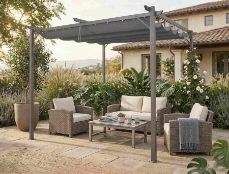 Create your own outdoor oasis with the Suncrest Pergola, designed to bring style, comfort, and versatility to any garden or patio space. With its sleek modern frame and adjustable canopy, this 3x3m pergola lets you effortlessly control sunlight and shade throughout the day—perfect for relaxing poolside, entertaining guests, or enjoying peaceful moments outdoors. Built with a durable structure and weather-resistant materials, it offers reliable protection while elevating your outdoor living experience with a clean, contemporary look. Inspired by modern pergola designs, adjustable canopies allow you to tailor shade and comfort as needed while maintaining a spacious, open feel