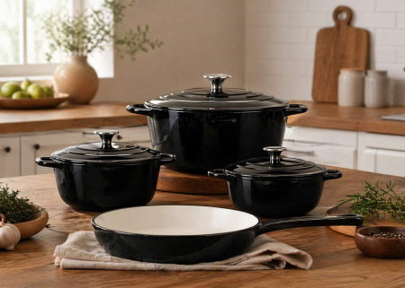 Upgrade your kitchen with the durability and timeless performance of this 7-piece cast iron cookware set. Designed for even heat distribution and long-lasting use, each piece delivers rich flavours and perfectly cooked meals every time. From stovetop searing to oven baking, this versatile set handles it all with ease. Built to retain heat and enhance taste, it’s the ultimate choice for home cooks who value quality, reliability, and effortless cooking.