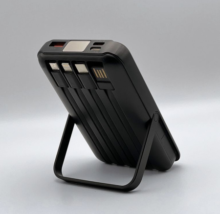 Stay charged on the go with this sleek 10,000mAh Wireless Charging Power Bank with Stand — designed for convenience, speed, and style. Whether you're at work, traveling, or relaxing at home, enjoy effortless wireless charging while the built-in stand lets you stream, scroll, or video call hands-free. Compact yet powerful, it’s your all-in-one solution for staying connected without the clutter of cables.