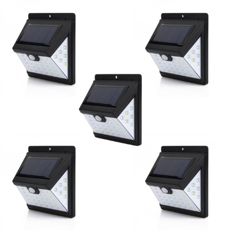 Set of Five 40 LED Solar Motion Sensor Wall Light