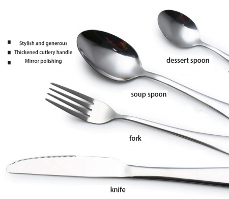 Enhance the elegance and style of your dining with contemporary 24pcs cutlery set. It has a sleek and unique designs along with aesthetic looks. They are strong, durable and generous in weights. The modern 24pcs cutlery sets are neither too bulky nor too light.