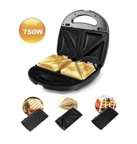 Get ready to unleash your culinary creativity with the 3-in-1 Sandwich Maker. With 3 interchangeable plates, you can make paninis, sandwiches, and waffles with ease. This versatile kitchen companion features double-sided uniform heating and non-stick coating for effortless cooking. Enjoy easy cleaning and convenient storage with its cool touch housing and vertical design