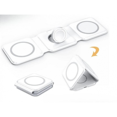 Streamline your charging routine with a dedicated with a charging pad whish allows for wireless charging for your smartphones and an exclusive watch charging station. Embrace a clutter-free space as you power up your devices simultaneously, ensuring you stay connected and on time. With sleek design and advanced technology, our 3-in-1 wireless charger is the epitome of efficiency, making it the perfect accessory for modern, on-the-go lifestyles. Simplify your charging experience – power up effortlessly with our all-in-one solution!
