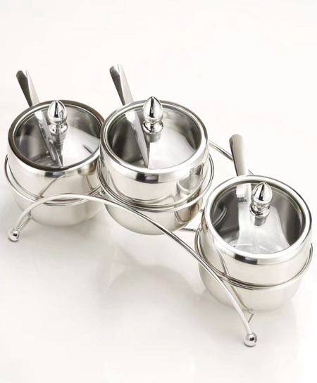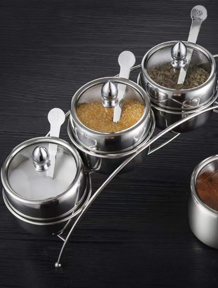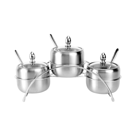 Upgrade your kitchen with this 3-Piece Seasoning Containers with Rack, designed for convenience and style. Each container features a secure lid and spoon for easy access, while the sleek rack keeps your spices neatly stored. Perfect for salt, sugar, pepper, and more—ideal for home cooks and chefs alike!