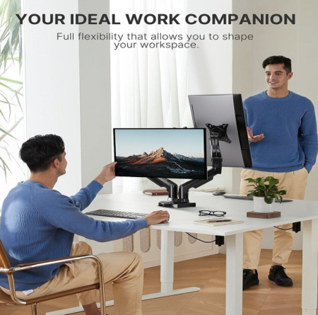 Upgrade your workspace with the 32″ Adjustable Dual Arm Monitor Stand, designed for enhanced productivity and ergonomic comfort. Whether you're working, gaming, or streaming, this stand supports two monitors up to 32 inches each with full-motion flexibility. Effortlessly tilt, swivel, rotate, and adjust the height to your ideal viewing angle — reducing neck and eye strain while maximizing desk space. Built with durable materials and a sleek, modern design, it's the perfect companion for any professional or creative setup.