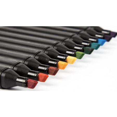 Brilliant colors ideal for a diverse range of uses, from animation, illustration, architectural renderings, and interior design sketches. With a unique fine point nib on one side and a broad chisel nib on the other, the double head markers offer artists and designers a greater range of line thicknesses than ever before.