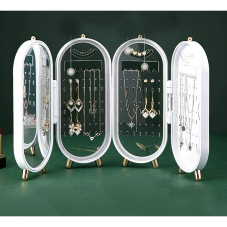 Multifunctional jewelry storage box with a large capacity which allows for 153 earring hanging holes, 21 necklace slots, 3 U-shaped slots. It will perfectly solve the problem of the missing or disorderly arrangement of your jewelry. This 4-layer jewelry box provides protection for your jewelry while have a glossy texture elegant and fashionable. It is the ideal jewelry case as it is portable and convenient for travel, travel trip, or business trip.