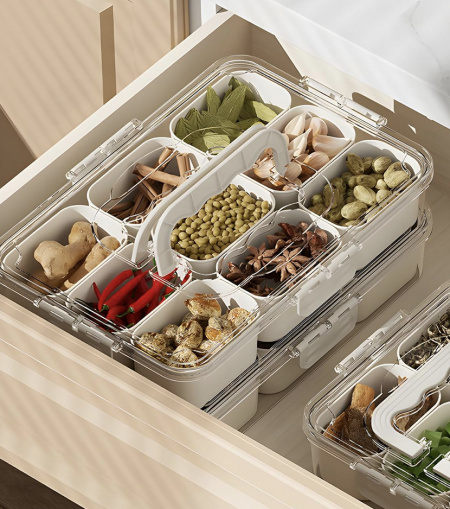 Maximize your storage with our 9-Compartment Multi-Functional Container — the ultimate solution for organizing snacks, spices, craft supplies, and more! Designed with convenience and versatility in mind, this durable container features individual compartments with a secure lid to keep contents fresh and mess-free. Whether for your kitchen, office, or travel bag, it’s the perfect blend of practicality and style.