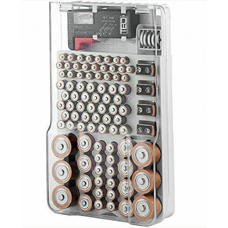 The clear cover allows you to quickly see what's inside with just a glance, and the unit is compact and lightweight for easy transport and storage - you can slide it in a drawer or hang it on the wall! Avoid using dead batteries with the included universal battery tester.