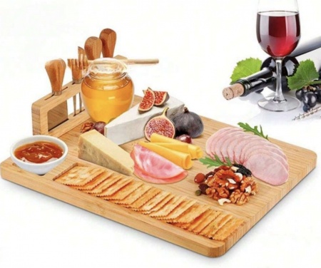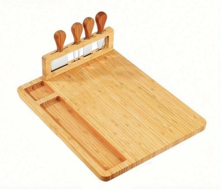 Indulge in the art of gourmet presentation with our exquisite cheese board and knife set. Crafted with elegance and functionality in mind, this set elevates any gathering into a sophisticated affair. The board's ample surface accommodates an array of cheeses, fruits, and charcuterie while the precision-crafted knives effortlessly slice through the most delicate to the firmest cheeses, ensuring a delightful experience for all connoisseurs. Elevate your hosting game and create lasting memories with this tasteful addition to your entertaining essentials.