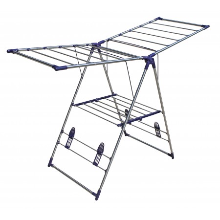 Keep your home organised and neat with the Fine Living Range of Drying Racks. Dry your garments effectively this Foldable Drying Rack, which features 2 expandable “wings”, which can be folded over for smaller loads, when a smaller surface area is needed, or expanded to different heights for a larger load or mixed items. The lower layer has holders for drying shoes, socks, or slippers. This rack is made of a durable, stainless-steel frame, making it ideal for indoor as well as outdoor use. The rack folds easily for convenient storage, making this space-saver a household necessity!