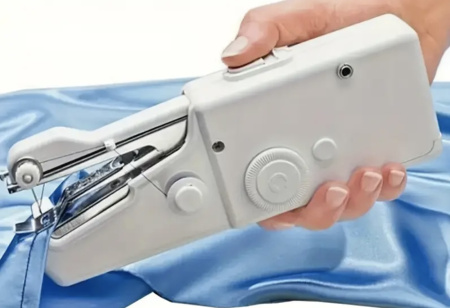 The Handy Stitch is your portable and cordless sewing machine. Handy Stitch is the portable hand-held sewing machine that packs the power of larger, more expensive machines. It's great for quick repairs or jobs that conventional desktop machines can't handle, like sewing curtains while on the rod, or mending a torn pocket without having to remove your pants.