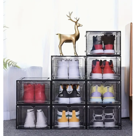 Optimize your space and showcase your favorite footwear with our Set of Two Stackable Shoe Boxes. Designed to keep shoes organized and easily accessible, each box is crafted from durable, transparent material, allowing for a clear view of your collection without the hassle of opening lids. The stackable design maximizes vertical space, making these boxes perfect for closets, entryways, and under-bed storage. Ideal for sneakerheads, fashion lovers, and tidy home enthusiasts alike—your shoes deserve stylish, clutter-free storage!