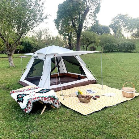 Experience comfort with AdventureShelter. Spacious and durable large summer canopy tent. Perfect for camping, outdoor events, and family gatherings. Innovative folding design for easy setup. Water-resistant and UV-protected canopy. Ideal for various weather conditions.