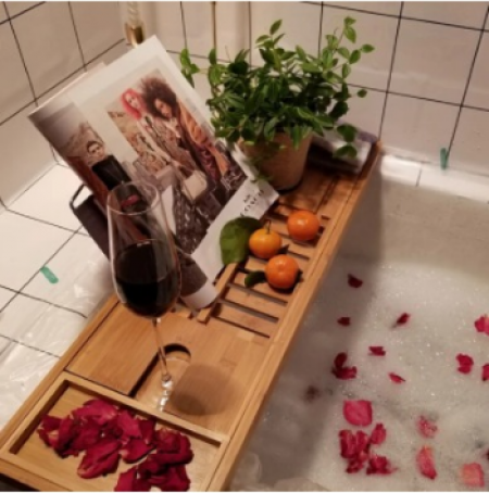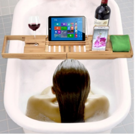 Get this amazing Bamboo Bath Caddy with built in cup holder, making it convenient for you as you can drink coffee, tea or your favorite wine while relaxing in a bubble bath. The bamboo tray can accommodate for all your bath items, such as razors, soaps, facial creams and cloths. You can watch YouTube too, with the bamboo device holder. The sides are simply extended to fit your bath and don’t lock in one place. Get this deal today!