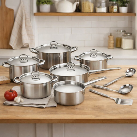 Upgrade your kitchen with the CookMaster 15pc Pot Set – the perfect blend of style, durability, and everyday performance. This sleek cookware set delivers even heat distribution for consistent, delicious results every time. Whether you're preparing quick weekday meals or hosting family dinners, the versatile range of pots, pans, and utensils ensures you have everything you need at your fingertips. With its polished finish and sturdy construction, CookMaster brings both elegance and reliability to your cooking experience.