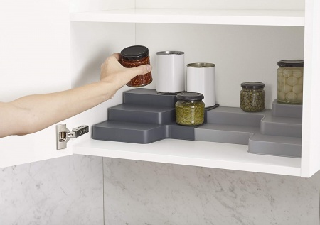 Better display your ingredients using this cupboard organizer with a step design to showcase the contents of your containers.