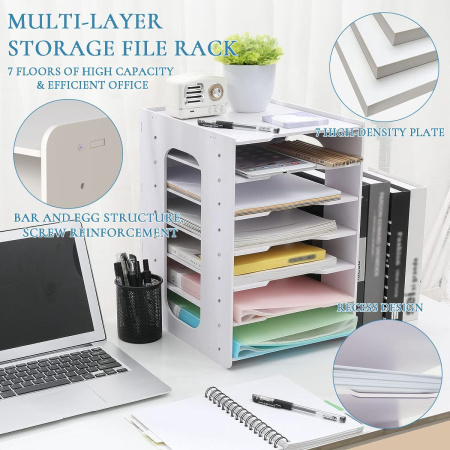 Stay organized and keep your workspace tidy with this sleek 7-Tier Desktop File Holder! Perfectly designed for home offices, corporate workspaces, or study areas, this file holder allows you to efficiently store documents, folders, and stationery essentials in its seven spacious tiers. Made with durable metal construction and a modern mesh design, it not only resists wear and tear but also adds a contemporary touch to any desktop. The open design provides quick access to all your files, while the non-slip feet keep it securely in place. Say goodbye to clutter and hello to productivity with this essential desktop organizer.
