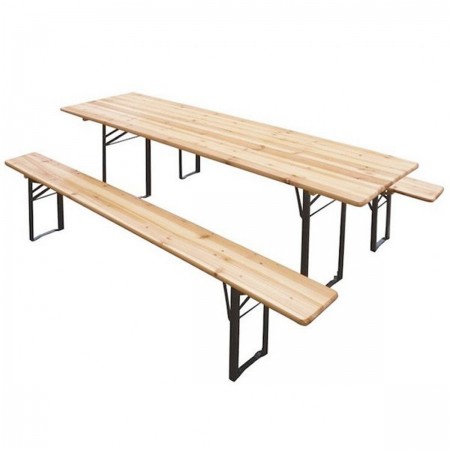 Enjoy your summer days with a foldable picnic bench and table wooden look and style. It comes with a picnic table and 2 benches that will seat 4.