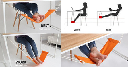 A Hammock replacing your desk at work, is probably not going to be approved, a good compromise though, is a hammock for your feet! It's the most comfortable way to sit at your desk - it simply hangs under your desk and raises or lowers to put you in a working or slacking mood as needed.