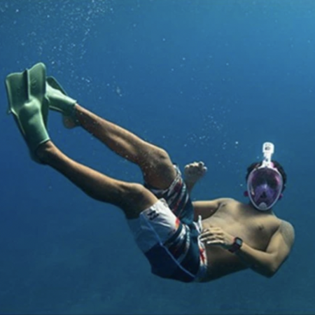 Spend more time snorkelling and less time worrying about water leaks and fogging with this full face snorkelling mask. This mask provides 180 degree views and allows you to breathe through both your nose and mouth. A must have for your next snorkelling trip.
