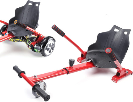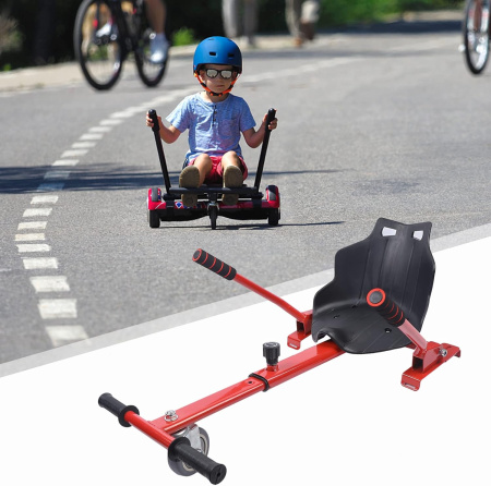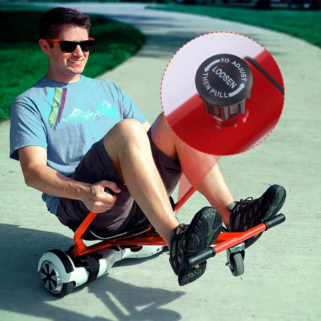 Transform your hoverboard into a go-kart with the HoverGo Kart Seat! This adjustable seat attachment is designed for electric self-balancing scooters, providing a safe and enjoyable ride. Made from durable metal and ABS materials, it supports a maximum load of 200lbs. The retractable skeleton and 360° swivel wheel ensure a comfortable and flexible ride. Experience a new level of fun and control with this innovative accessory!