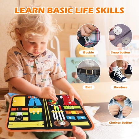 Unlock your child's potential with Little Explorer 9-in-1 Montessori Busy Board. Foster problem-solving, hand-eye coordination, and colour recognition through play. Develop fine motor skills with 14 interactive elements. Perfect for travel, this sensory toy offers hours of entertainment and learning. Ideal gift for toddlers' cognitive development.