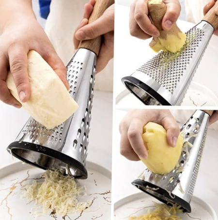 The Non-Slip Stainless Steel Cone Grater is a versatile kitchen tool designed for effortless grating and zesting. Made from durable, quality stainless steel, it features a finely crafted cone shape that allows for precise grating of a variety of ingredients, including cheese, vegetables, fruits, and spices. The non-slip base ensures stability and safety while in use, preventing slippage on countertops. With its ergonomic design and multiple grating surfaces, this grater offers a convenient solution for your food prep needs, making it perfect for both home cooks and professional chefs alike. Easy to clean and built to last, it's an essential addition to any kitchen.