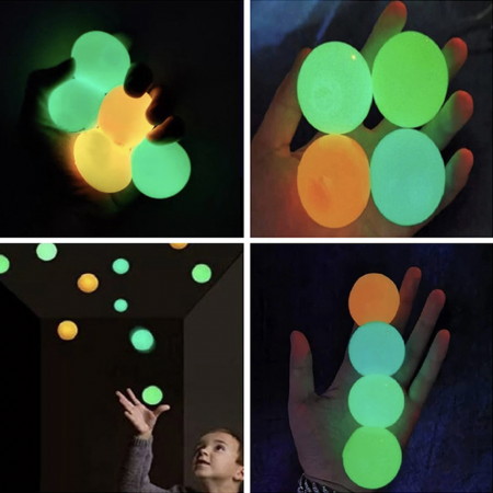 These Glow in the dark sticky fidget balls are the perfect gift for people who fidget. Whether you're stressed or anxious, these balls will keep your hands busy while illumintaing your room at night. Simply throw them at the wall or ceiling and watch as they stick and then catch them as they fall off. Then do it again.