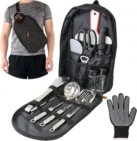 Enjoy outdoor cooking like never before with this 13 Pieces Travel BBQ Tools Set! Whether you're camping or having a backyard BBQ, this set has all the essential utensils you need to prepare and serve meals safely and with confidence. This set comes with a stylish and exclusive carrying bag for comfort and convenience with added pockets for easy storage. Enjoy delicious meals outdoors!