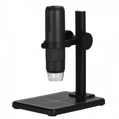 The Wifi Digital Microscope is equipped with a 2MP lens, 1080p resolution and 8 adjustable LEDs. Comes with a height adjustable stand, you can easily change the height by rotating the handle, can also be used as a handheld microscope.